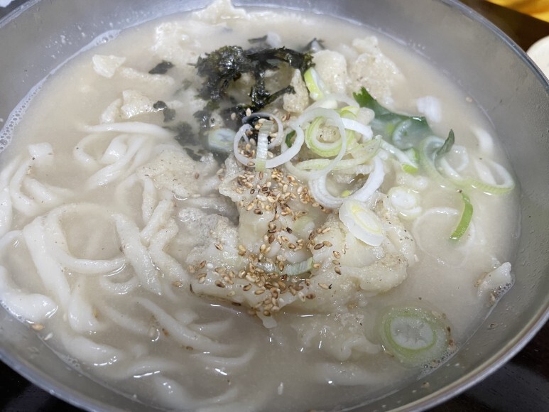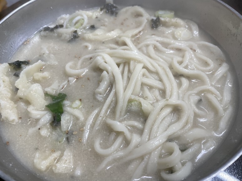 진한 멸치육수에 들깨가루가 넉넉히 들어가 고소합니다.