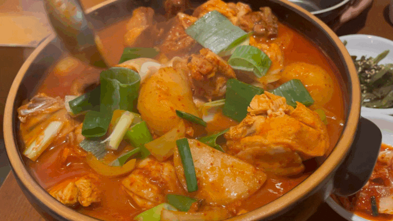 감자도 넉넉히 들어가 있고 얼큰하고 닭 잡내 없이 깔끔합니다.